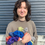 Nonbinary artist Riley Kleve’s work in textiles explores how past techniques still resonate today. Embracing imperfect translation between hand, machine, and archive, they work towards a queerer future for textiles. Riley has a BA in Curatorial Practice from Hampshire College, and teaches hand embroidery and yarn spinning classes locally. Check out more of Riley’s work via their website: Rileykleve.com and follow them on their instagram @lezphair.