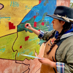 The community is invited to journey along the cloth rivers and interact with the teachings of water. The rivers’ pathway includes a multi-sensory environment of song, visual storytelling, and movement. The experience involves Native artists painting water stories on the cloth rivers, Native singers sharing songs of gratitude to the water, and an ensemble of movers embodying what it means to remember our connection to water. We consider this project a gesture towards remembrance. We invite audiences to participate through witness, exploration, and contemplation. Together we ask ourselves: What is our connection to water? How can we remember the significance of water in our lives?